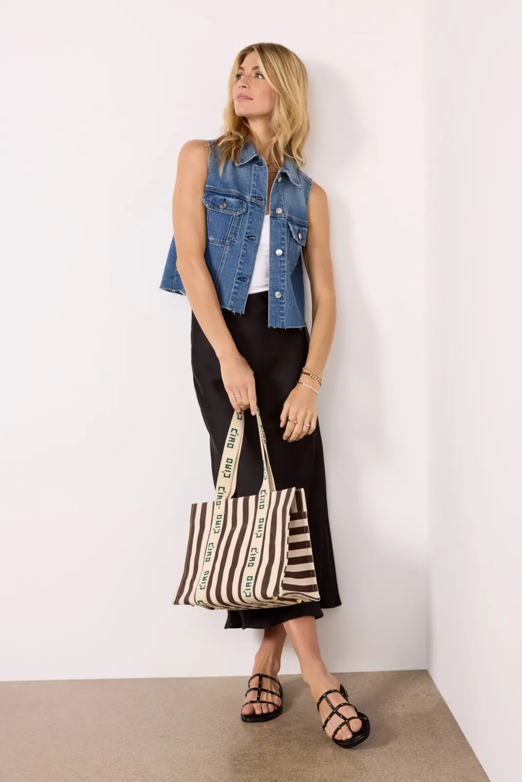 A fitted black or white button-down vest is sophisticated and sexy, especially with matching pants for a twist on the matching set or with your favorite denim shorts or jeans.